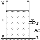 4、简答题  如图所示,高为H=60cm的气缸竖直放置在水平地面上,内有一质量为m=5kg、横截面积为S=25cm2的活塞.气缸的顶部装有卡环,可以阻止活塞离开气缸,气缸的右侧正中央安装一阀门,阀门细管直径不计.现打开阀门,让活塞从气缸顶部缓缓下降直至静止,气体温度保持t0=27℃不变,不计活塞与气缸间的摩擦,大气压强p0=1.0×105Pa.求: