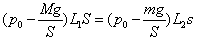 1、计算题 一个内壁光滑的圆柱形气缸,质量为M,底面积为S。缸内有一个质量为m的活塞,封闭了一定质量的理想气体,不计活塞厚度。温度为t0时,如果用绳子系住活塞将气缸悬挂起来,如图(a)所示,气缸内气体柱的高为L1,如果用绳子系住气缸底,将气缸倒过来悬挂起来,如图(b)所示,气缸内气体柱的高为L2,设两种情况下气缸都处于竖直状态,求:当时的大气压强。