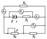 5、选择题 如图所示,图中的四个电表均为理想电表,当滑动变阻器滑动触点P向右端移动时,下面说法中正确是?(?)