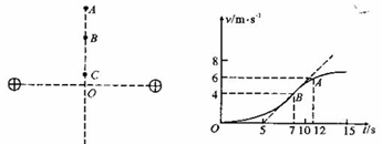 4、选择题  两个等量同种电荷固定于光滑水平面上,其连线中垂线上有A、B、C三点,如图所示。一个电荷量为2C,质量为1kg的小物块从C点静止释放,其运动的vt图象如图所示,其中B点处为整条图线切线斜率最大的位置(图中标出了该切线)。则下列说法正确的是