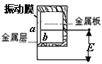3、选择题 传感器是将非电学量转换成便于测量的电学量的一种元件。如图所示为电容式话筒的示意图,它可将声音信号转化为电信号。b是固定不动的金属板,与b相距几十微米的a是能在声波驱动下沿水平方向振动的镀有金属层的振动膜,a、b构成一个电容器,且通过导线与恒定电源E两极相接。a随声波振动时电容器的电容发生变化,导致电容变化的原因是a、b之间的( ? )