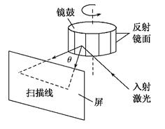 4、选择题 为了连续改变反射光的方向,并多次重复这个过程,方法之一是旋转由许多反射面组成的多面体棱镜(简称镜鼓),如图所示.当激光束从固定方向入射到镜鼓上的一个反射面上时,由于反射镜绕垂直轴旋转,反射光就可在屏幕上扫出一条水平线.依此,每块反射镜都将轮流扫描一次.如果要求扫描的范围θ=45°且每秒钟扫描48次,那么镜鼓的反射镜面数目和镜鼓旋转的转速分别为( )