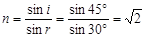 在B点光线的入射角、折射角分别标为i、r,在ΔOCP中:有