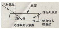 5、选择题 光盘上的信息通常是通过激光束来读取的。若激光束不是垂直入射到盘面上,则光线在进入透明介质层时会发生偏折而改变行进方向。如图所示为一束激光(红光、蓝光混合)入射到光盘盘面上后的折射情况,据此下列判断中正确的是(?)