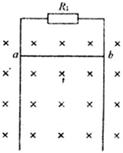 、电阻为 的金属杆ab与导轨垂直并接触良好,导轨电阻不计.整个装置处于与导轨平面垂直的磁感应强度为B=1T的匀强磁场中.ab杆由静止释放,若下落h=O.8m后开始做匀速运动,g取10m/s2,求: