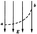 5、选择题 一带电油滴在匀强电场E中从a到b的运动轨迹如图中虚线所示,电场方向竖直向下,不计空气阻力。此带电油滴从a运动到b的过程中,能量变化情况是