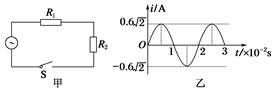 2、选择题 电阻R1、R2与交流电源按照图所示甲方式连接,R1=10 Ω,R2=20 Ω.合上开关S后,通过电阻R2的正弦交变电流i随时间t变化的情况如图乙所示.则 ( )
