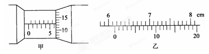 3、实验题 (6分) 用螺旋测微器测圆柱体的直径时,示数如图甲所示,此示数为_____________mm,用分度为0.05mm的游标卡尺测量某物体的厚度时,示数如图乙所示,此示数为_____________cm.