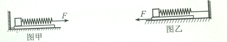 方案甲:固定木板,水平拉弹簧使木块做匀速直线运动(如图甲)