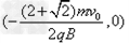 4、计算题 如图所示,一个带负电的粒子以速度v由坐标原点射入磁感应强度为B的匀强磁场中,速度方向与x轴、y轴均成45°。已知该粒子电量为-q,质量为m,则该粒子通过x轴和y轴的坐标分别是多少?