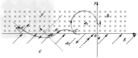 2、计算题 如图所示,x轴上方有一匀强磁场,磁感应强度的方向垂直于纸面向里,大小为B,x轴下方有一匀强电场,电场强度的大小为E,方向与y轴的夹角θ为45°且斜向上方.现有一质量为m电量为q的正离子,以速度v0由y轴上的A点沿y轴正方向射入磁场,该离子在磁场中运动一段时间后从x轴上的C点(图中未画出)进入电场区域,该离子经C点时的速度方向与x轴夹角为45°.不计离子的重力,设磁场区域和电场区域足够大.求: