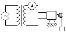 4、计算题 如图所示,理想变压器的输出端接有一交流电动机,电动机线圈的电阻为R,电动机正在将质量为m的重物以速度v匀速提升,若不计摩擦和空气阻力,变压器的输入功率为P,求图中电流表的示数。