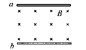 3、选择题  如图所示,水平放置的平行金属板a、b带有等量异种电荷,a板带正电,两板间有垂直于纸面向里的匀强磁场,若一个带正电的液滴在两板间做直线运动,其运动的方向是(?)