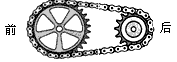 5、选择题 如图所示,自行车的传动是通过连接前、后齿轮的金属链条来实现的。下列关于自行车在转动过程中有关物理量的说法正确的是