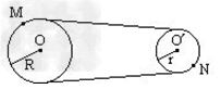 4、选择题 如图所示,皮带传动装置,在运行中皮带不打滑,两轮半径分别为R和r,且r/R=2/3,M、N分别为两轮边缘上的点,则在皮带运行过程中