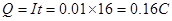 5、填空题 某电池电动势为1.5V,如果不考虑它内部的电阻,当把它的两极与150Ω的电阻连在一起时,16秒内有?C的电荷定向移动通过电阻的 横截面。