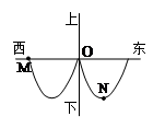 5、选择题 (5分)在t=0s时刻向平静水面的O处投下一块石头,水面波向东西南北各个方向传播开去,当t=1s时水面波向西刚刚只传到M点(图中只画了东西方向,南北方向没画出),OM的距离为1m,振动的最低点N距原水平面15cm, 如图,则以下分析正确的是