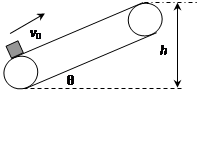 4、计算题 (10分)如图所示,绷紧的传送带与水平面的夹角θ=30°,皮带在电动机的带动下,始终保持V0=2m/s的速率顺时针运行。现把一质量m=10kg的工件(可看为质点)轻轻放在皮带的底端,经时间t=1.9s,工件被传送到h=1.5m的高处,取g=10m/s2.