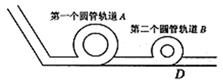 高).某次一挑战者自斜管上某处滑下,经过第一个圆管形管道