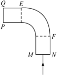 2、填空题 如图所示,一段横截面为正方形的玻璃棒,中间部分弯成四分之一圆弧形状,一细束单色光由MN端面的中点垂直射入,恰好能在弧面EF上发生全反射,然后垂直PQ端面射出.