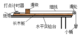 ⑶在⑵问的基础上,让小桶带动滑块加速运动,用打点计时器记录其运动情况,在打点计时器打出的纸带上取两点,测出该两点的间距为L、打下该两点时滑块的速度大小为v1、v2(v1< v2),已知当地的重力加速度为g。写出实验要验证的动能定理表达式??(用题中所给的字母表示)。
