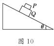 1、计算题 (15分)如图10所示,质量分别为m和M的两物体P和Q叠放在倾角为θ的斜面上,P、Q之间的动摩擦因数为μ1,Q与斜面间的动摩擦因数为μ2(μ1>μ2).当它们从静止开始沿斜面滑下时,两物体始终保持相对静止,则物体P受到的摩擦力大小为多少?