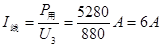 W=5280W,设线路电流为