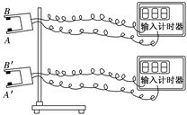 5、选择题 光电计时器是物理实验中经常用到的一种精密计时仪器,它由光电门和计时器两部分组成,光电门的一臂的内侧附有发光装置(发射激光的装置是激光二极管,发出的光束很细),如图实-4-12中的A和A′,另一臂的内侧附有接收激光的装置,如图实-4-12中的B和B′,当物体在它们之间通过时,二极管发出的激光被物体挡住,接收装置不能接