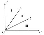 D.不管电阻a、b是串联,还是并联,等效电阻的I-U图线一定不在区域Ⅱ