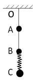 5、选择题 如图所示,天花板上用轻绳(不可伸长)和轻弹簧依次悬挂着三个小球,小球A、B的质量均为m,C球的质量为2m,三个小球都处于静止状态.若剪断绳子OA,在此瞬间,A、B、C三个小球的加速度大小分别为(? )