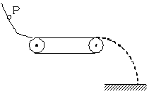 1、选择题 如图所示,小物块从光滑的倾斜轨道上的P点自由滑下,到达底端后滑上一水平传送带(轨道底端与传送带表面相齐平)。当传送带静止时,小物块通过传送带后水平飞出落到地面上,物块与皮带因摩擦产生的热量为Q。当皮带轮按逆时针方向匀速转动时,则小物块从P点自由滑下后