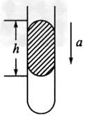 4、计算题 如图所示,在粗细均匀的直玻璃管中,用长为h的一段水银柱封 闭一定质量的空气,当时大气压强为P0 ,水银密度为ρ,把管开口向上竖直放置在电梯中,当玻璃管与电梯共同以大小为a的加速度(a<g)加速下降时,被封闭气体压强是多少?