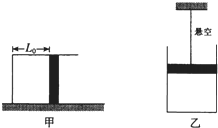 2、简答题 今有一质量为M的气缸,用质量为m的活塞封有一定质量的理想气体,当气缸水平横放时,空气柱长为L0(如图甲所示),若将气缸按如图乙悬挂保持静止时,求气柱长度为多少.已知大气压强为p0,活塞的横截面积为S,它与气缸之间无摩擦且不漏气,且气体温度保持不变.
