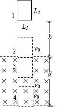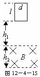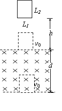 3、计算题 如图所示,水平的平行虚线间距为d,其间有磁感应强度为B的匀强磁场。一个长方形线圈的边长分别为L1、L2,且L2<d,线圈质量m,电阻为R。现将线圈由静止释放,测得当线圈的下边缘到磁场上边缘的距离为h时,其下边缘刚进入磁场和下边缘刚穿出磁场时的速度恰好相等。求: