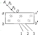 4、选择题 如图,在用插针法测上下表面平行的玻璃砖折射率的实验中,已确定好入射方向AO,插了两枚大头针P1和P2,1、2、3分别是三条直线,关于以后操作的说法中,你认为正确的是 ( ? )