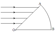 5、计算题 如图所示,扇形AOB为透明柱状介质的横截面,半径为R,介质折射率为