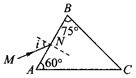 3、计算题 如图所示是用于某光学仪器中的一种折射率n=1.5的棱镜。现有一束光线沿MN的方向射到棱镜的AB界面上,入射角的正弦值sini=0.75。求光在棱镜中传播的速率及此束光线射出棱镜后的方向(不考虑返回到AB面上的光线)。