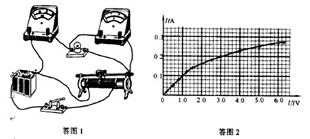 本题解析:【小题1】小灯泡灯丝电阻较小,所以选用电流表外接,描绘小灯泡的伏安特性,需要将电压从零调起,即滑动变阻器分压式接法,连接成实验电路如下图