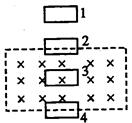 5、选择题 如图所示,匀强磁场存在于虚线框内,矩形线圈竖直下落。如果线圈中受到的磁场力总小于其重力,则它在1、2、3、4位置时的加速度关系为?(?)