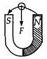 4、选择题 如图所示,把一导线用弹簧挂在蹄形磁铁磁极的正上方,当导线中通以图示电流I时,导线的运动情况是(从上往下看)(?)
