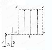 1、计算题 如图所示,离子发生器发射一束质量为m,电荷量为+q的离子,从静止经PQ两板间的加速电压加速后,以初速度v0再从a点沿ab方向进入一匀强电场区域,abcd所围成的正方形区域是该匀强电场的边界,已知正方形的边长为L,匀强电场的方向与ad边平行且由a指向d。