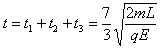 可知,带电系统从静止到速度第一次为零所需的时间为: