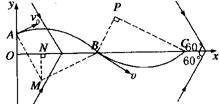 设质子在电场中运动的加速度为a,在A、B两点的速度分别为v0、v,经历时间为t1,作AM垂直于v0方向,BM平行于v0方向,过交点M作x轴的垂线,垂足为N,则