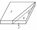 3、选择题 如图所示,在粗糙的水平面上,静置一矩形木块,木块由A.B两部分组成,A的质量是B的3倍,两部分接触面竖直且光滑,夹角θ=,现用一与侧面垂直的水平力F推着B木块贴着A匀速运动,A木块依然保持静止,则A受到的摩擦力大小与B受到的摩擦力大小之比为(? )
