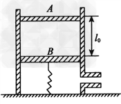 如图所示,一个上下都与大气相通的直圆筒,其横截面积S=10-2 m2,中间用两个活塞A与B封住一定质量的理想气体,A,B都可沿圆筒无摩擦地上、下滑动,但不漏气。A的质量可不计,B的质量为M,并与一劲度系数k=5×103 N/m的较长的弹簧相连,已知大气压强p0=1×105 Pa,平衡时,两活塞间的距离l0=0.6 m,现用力压A,使之缓慢向下移动一定距离后保持平衡,此时,用于压A的力F=5×102 N,求活塞A向下移动的距离。(假定气体温度保持不变)
