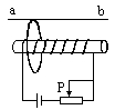 3、选择题 如图所示,在通电密绕长螺线管靠近左端处,吊一金属环a处于静止状态,在其内部也吊一金属环b处于静止状态,两环环面均与螺线管的轴线垂直且环中心恰在螺线管中轴上,当滑动变阻器R的滑片P向左端移动时,a、b两环的运动情况将是( )