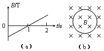 5、选择题 如图所示,一个闭合环形线圈放在变化的磁场中,磁感应强度B随时间t的变化如图(a)所示。设在第1s内磁感线垂直于线圈平面向里,如图(b)所示。关于线圈中产生的感应电流,下列说法中正确的是
