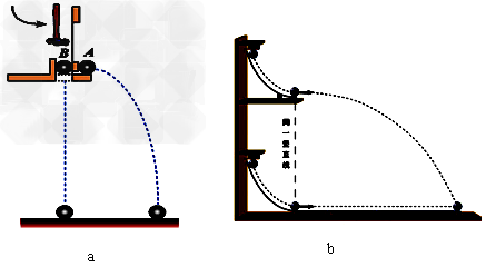 2、选择题 在研究平抛运动时,我们做了两点猜想①平抛的水平分运动是匀速直线运动;②平抛的竖直分运动是自由落体运动。为此,我们通过对比实验进行了探究,如图的a、b两个实验所示,则关于两实验下列说法正确的是
