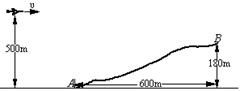 5、选择题 如图6所示,一架在500 m高空以200 m/s的速度水平匀速飞行的轰炸机,要用两枚炸弹分别炸山脚和山顶的目标A和B。已知山高 180 m,山脚与山顶的水平距离为600 m, 若不计空气阻力,g 取10 m/s2,则投弹的时间间隔应为?(?)