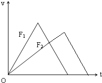 作出速度时间图象如图,根据v-t象的“面积”等于位移,得知,推力F1作用的那次,全过程所用时间短;而推力为F2作用时,所用时间长;